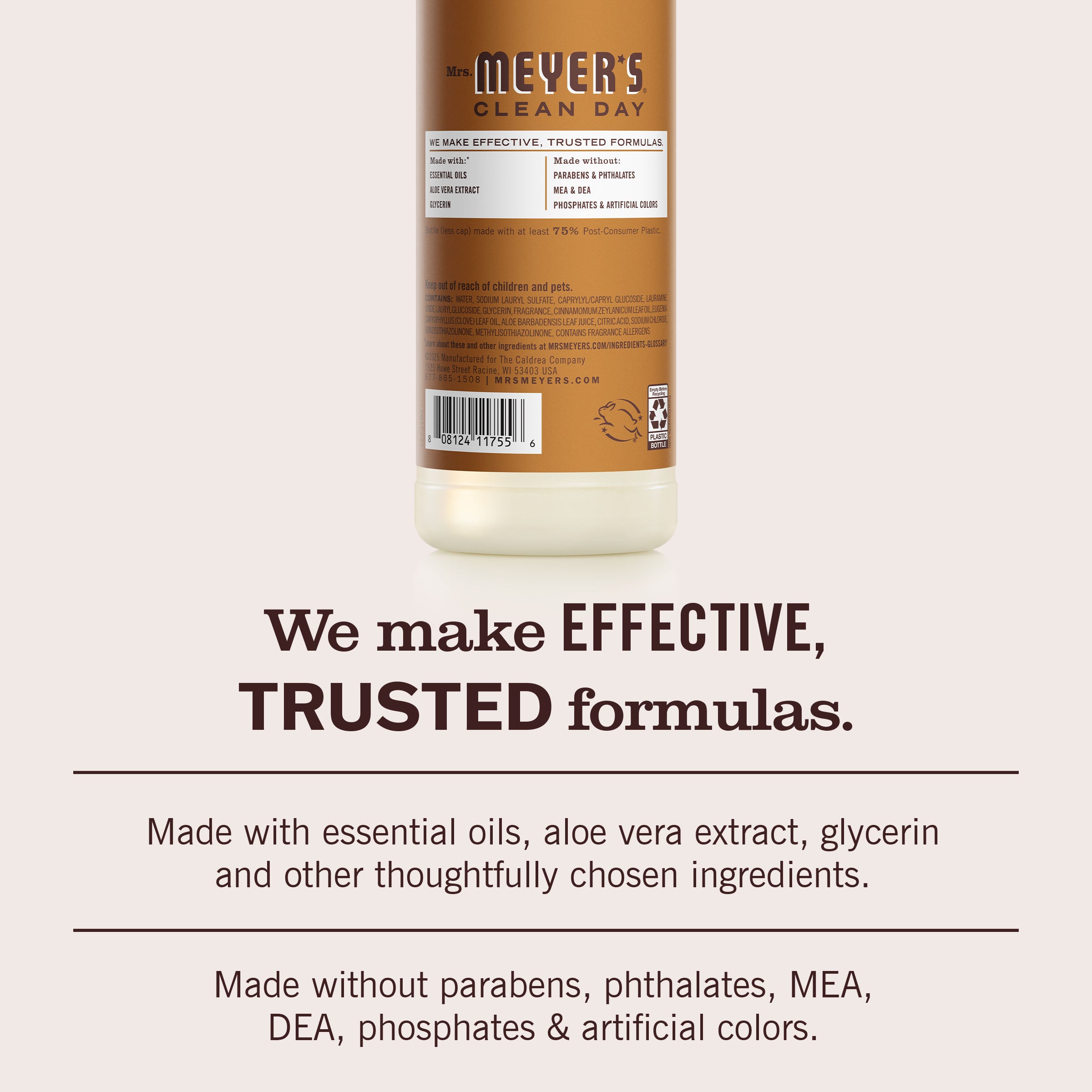 - TESTED & TRUSTED: Mrs. Meyer’s products are made with essential oils, aloe vera, glycerin, and other thoughtfully chosen ingredients that are cruelty-free and Leaping Bunny Certified.