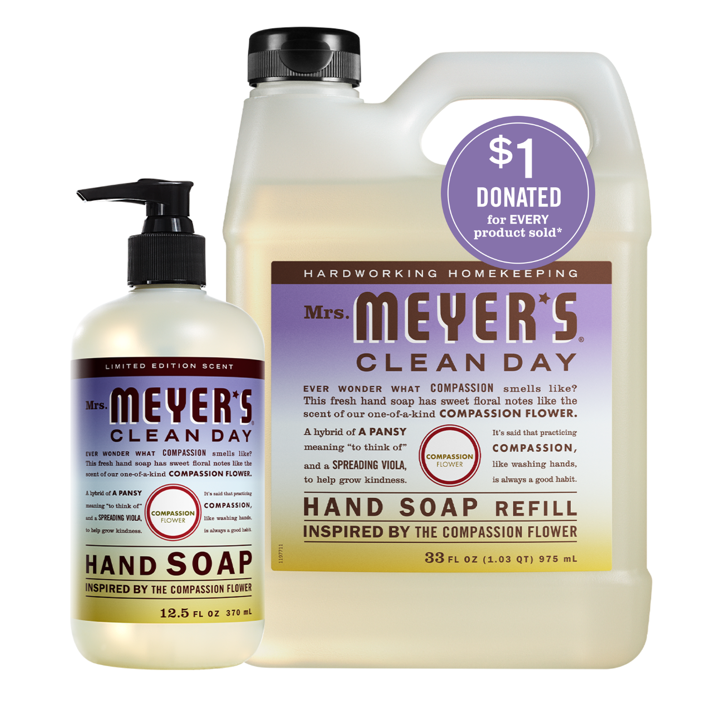 - *$1 will go towards the Lots of Compassion program for every Mrs. Meyer’s Compassion Flower product sold on mrsmeyers.com or at Walmart from 4/2/2026 to 7/31/2026, up to $200,000.