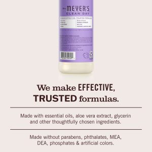 - TESTED & TRUSTED: Mrs. Meyer’s products are made with essential oils, aloe vera, glycerin, and other thoughtfully chosen ingredients that are cruelty-free and Leaping Bunny Certified.