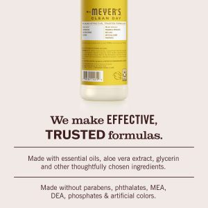 - TESTED & TRUSTED: Mrs. Meyer’s products are made with essential oils, aloe vera, glycerin, and other thoughtfully chosen ingredients that are cruelty-free and Leaping Bunny Certified.