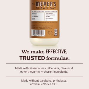 - TESTED & TRUSTED: Mrs. Meyer’s products are made with essential oils, aloe vera extract, olive oil, and other thoughtfully chosen ingredients that are cruelty-free and Leaping Bunny Certified.