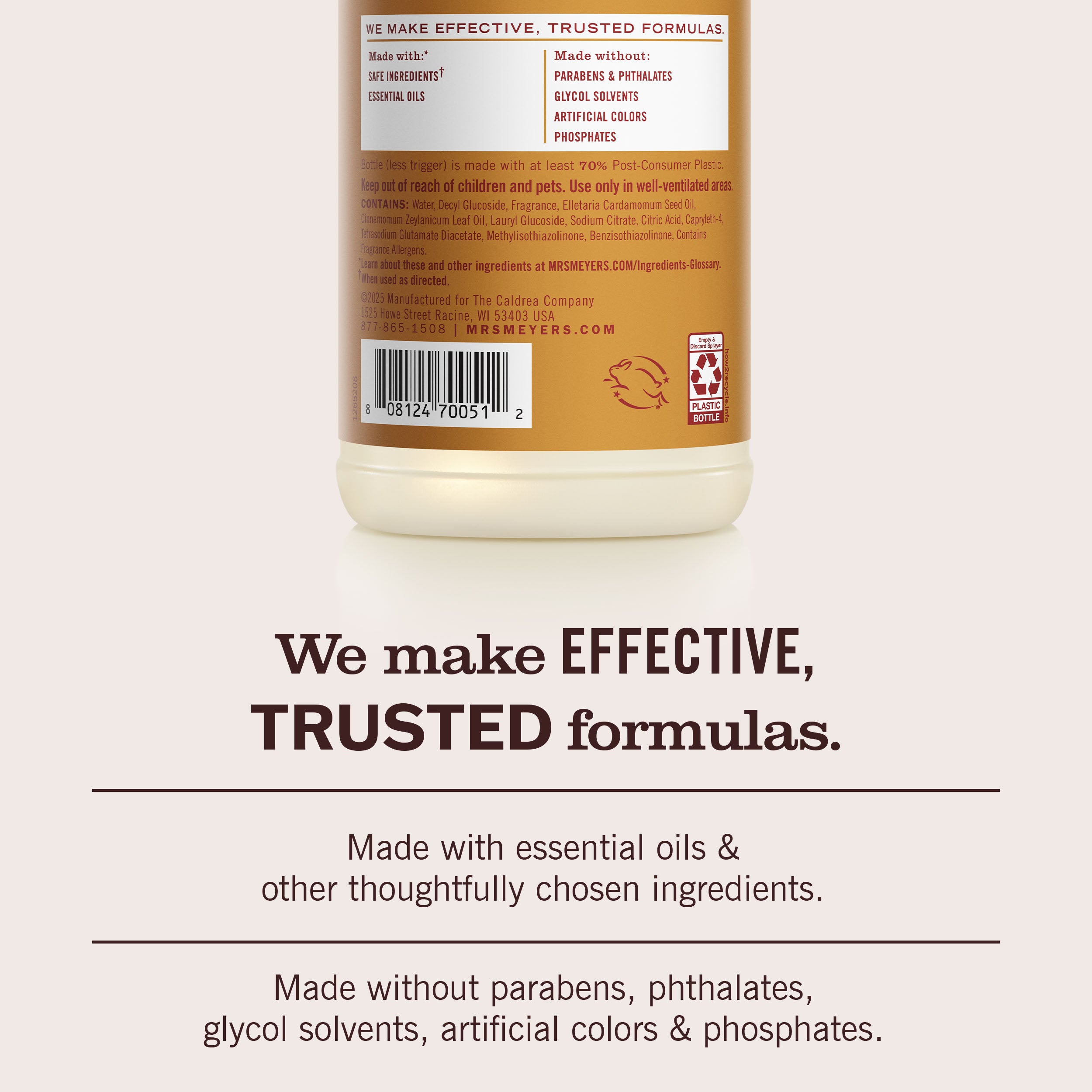 - TESTED & TRUSTED: Mrs. Meyer’s products are made with essential oils and other thoughtfully chosen ingredients that are cruelty-free and Leaping Bunny Certified.