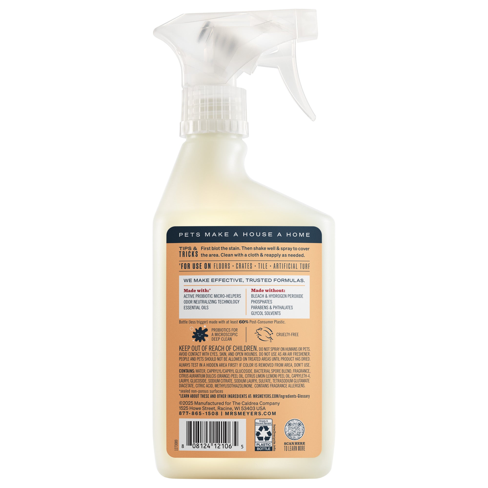 • MADE WITH POWERFUL INGREDIENTS: This Mrs. Meyer’s for Pets cleaning product is made with probiotic micro-helpers for a continuous microscopic clean, odor neutralizing technology to fight odors right at the source opposed to masking them, and other thoughtfully chosen ingredients that are cruelty-free and Leaping Bunny Certified.