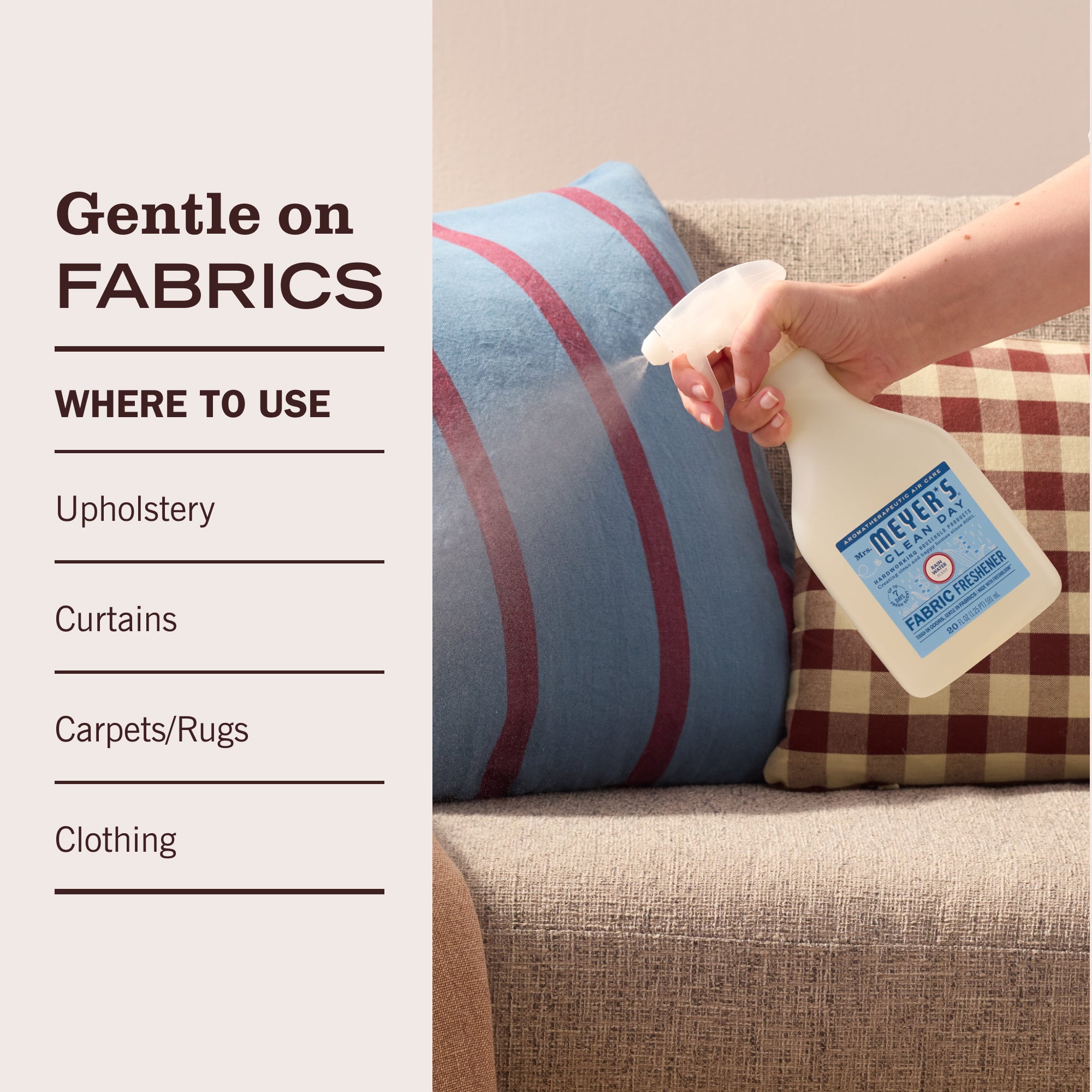 - INSTANT FRESHENING: Quickly give hard-to-wash fabrics a pick me up with our Fabric Spray. Adds a freshness and fights odors on fabrics in your home.