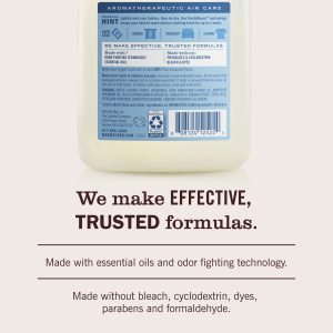 - WE MAKE EFFECTIVE, TRUSTED FORMULAS: Made with essential oils, odor fighting technology, and other thoughtfully chosen ingredients. Made without bleach, cyclodextrin, dyes, parabens and formaldehyde.