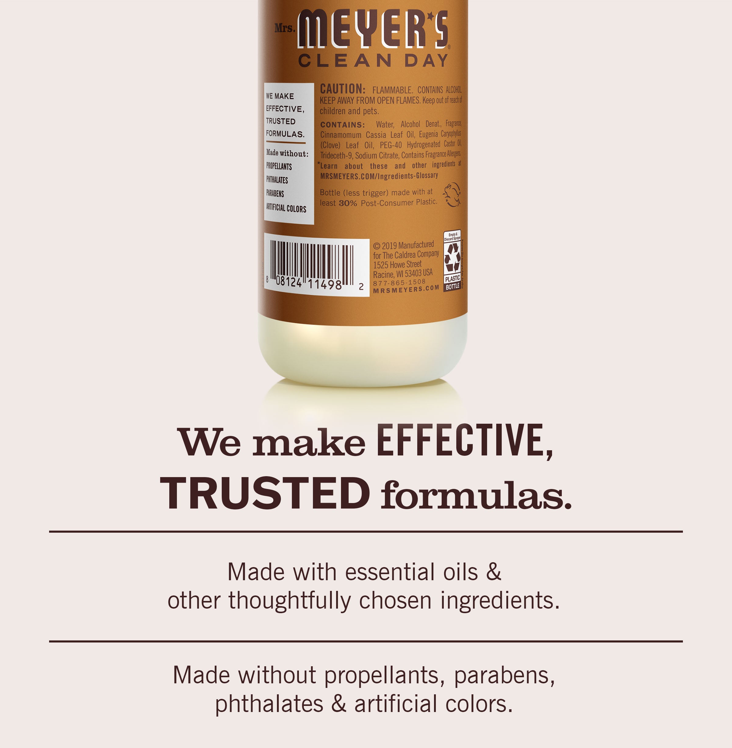 - TESTED & TRUSTED: Mrs. Meyer’s products are made with essential oils and other thoughtfully chosen ingredients that are cruelty-free and Leaping Bunny Certified.
