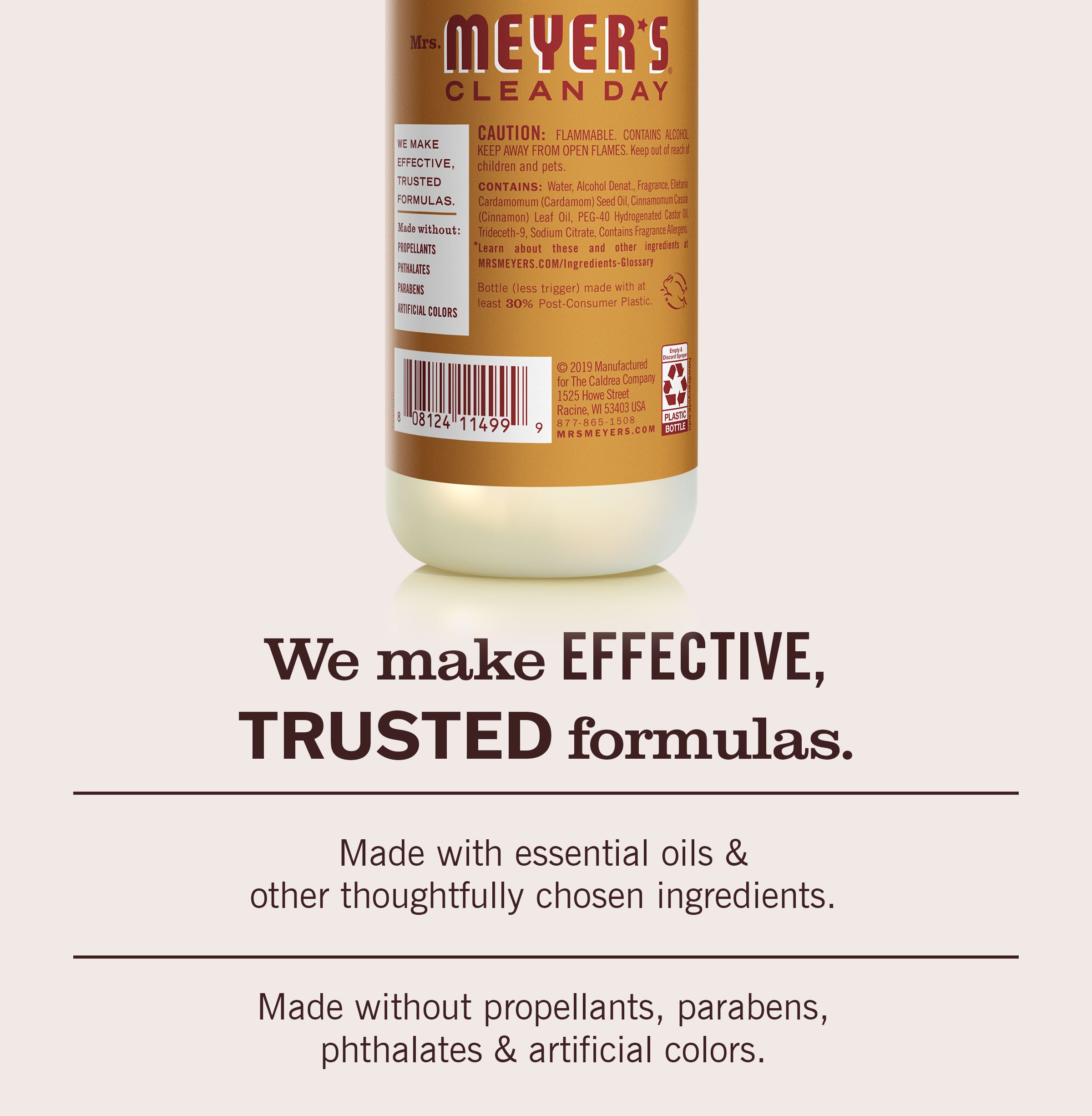 - TESTED & TRUSTED: Mrs. Meyer’s products are made with essential oils and other thoughtfully chosen ingredients that are cruelty-free and Leaping Bunny Certified.