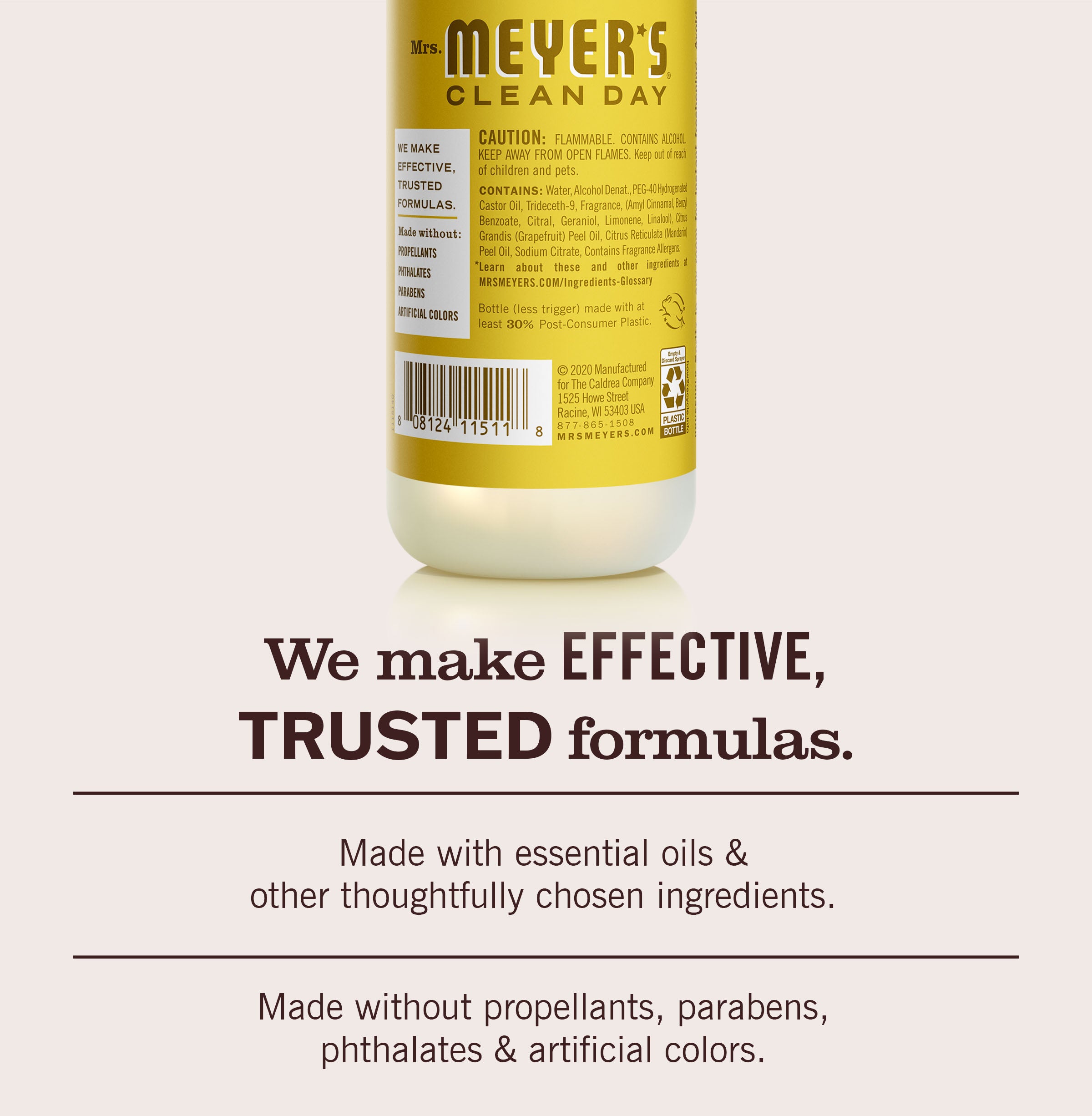 - TESTED & TRUSTED: Mrs. Meyer’s products are made with essential oils and other thoughtfully chosen ingredients that are cruelty-free and Leaping Bunny Certified.